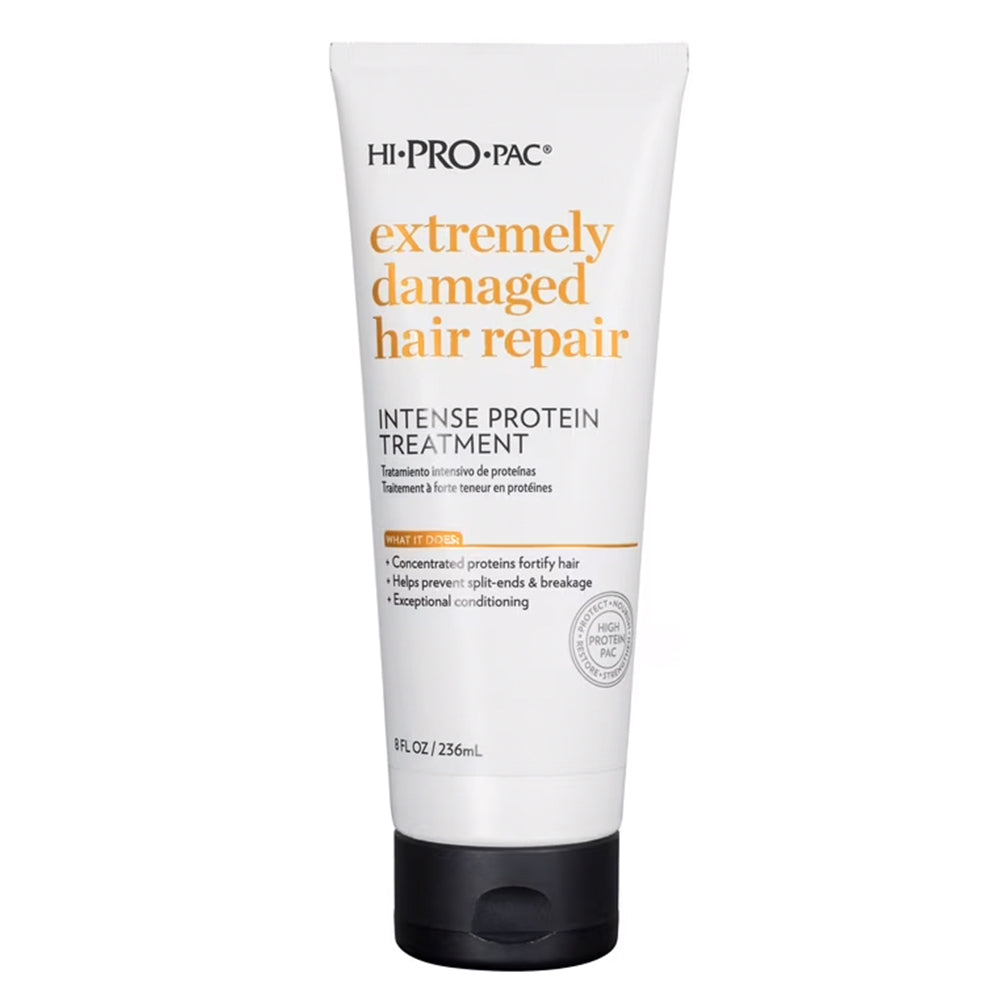 Hi Pro Pac Extremely Damaged Hair Intense Protein Treatment 237ml imparts exceptional conditioning to improve hair strength and prevent breakage. An intense protein treatment to treat and correct excessively damaged hair. Concentrated proteins and active moisturisers improve strength and prevent split ends and breakage in only 2-5 minutes.